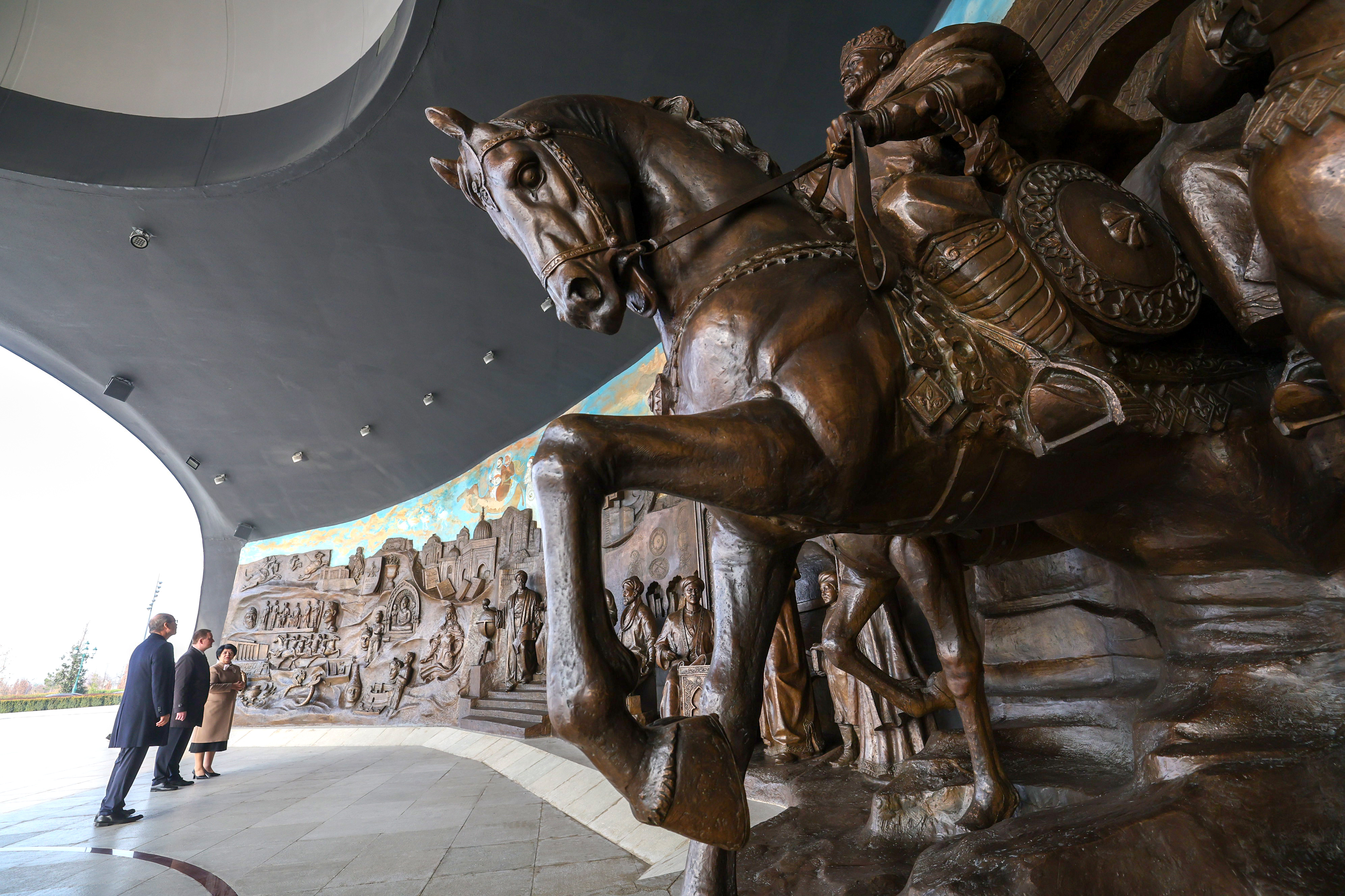 У основания монумента установлен барельеф, на котором отображены важнейшие события древней и современной истории Узбекистана, а также великие мыслители, государственные деятели и ученые, оказавшие влияние на развитие страны.
