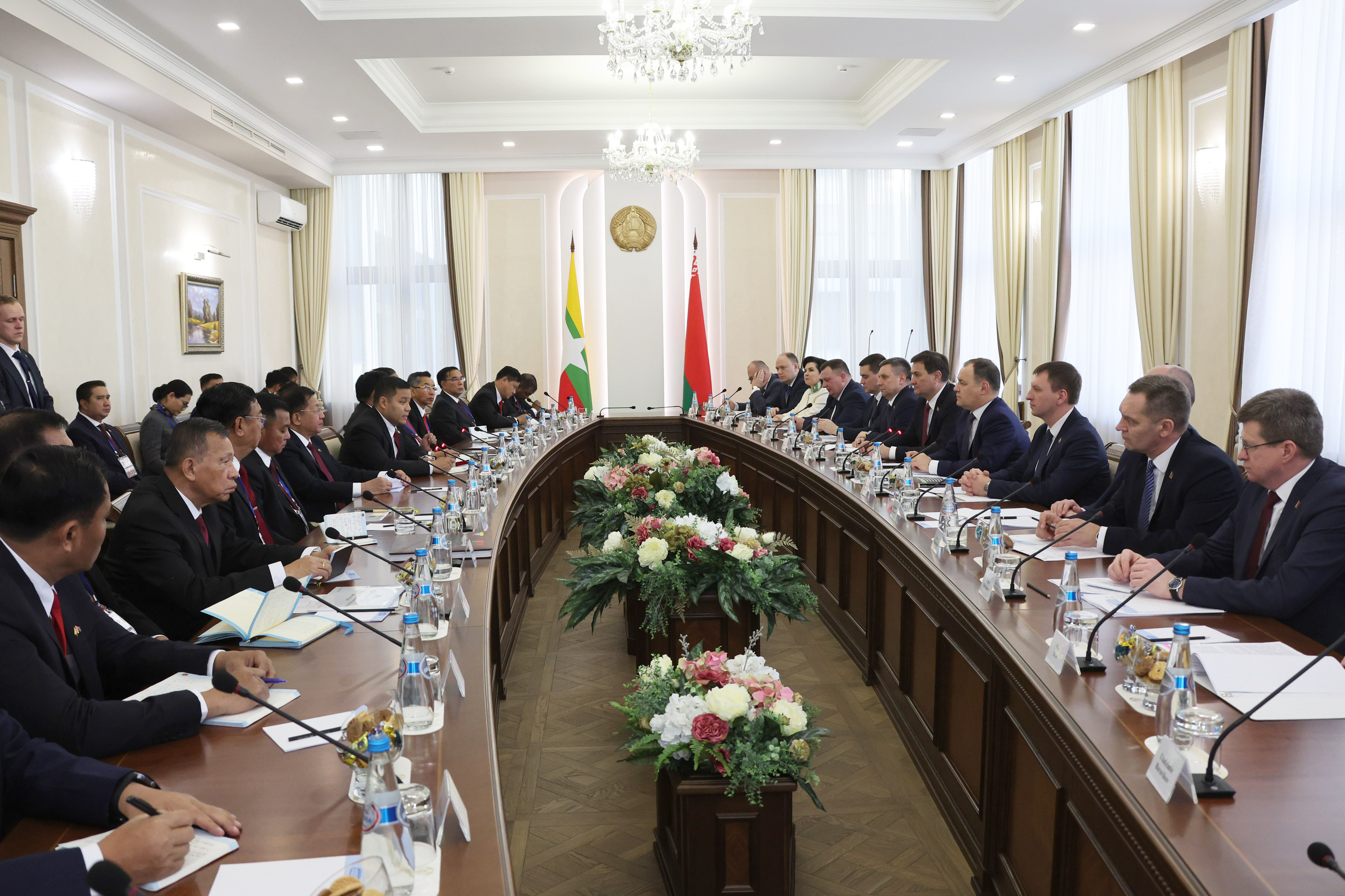 Роман Головченко отметил, что Беларусь и Мьянму связывают тесные дружеские отношения, которые выстраиваются многие годы в доверительном и конфиденциальном ключе. «Мы признательны за ваше личное усилие по развитию двустороннего диалога, - обратился он к Мин Аун Хлайну. - Визит такого высокого уровня предоставляет наилучшую возможность для укрепления всего блока белорусско-мьянманских отношений».