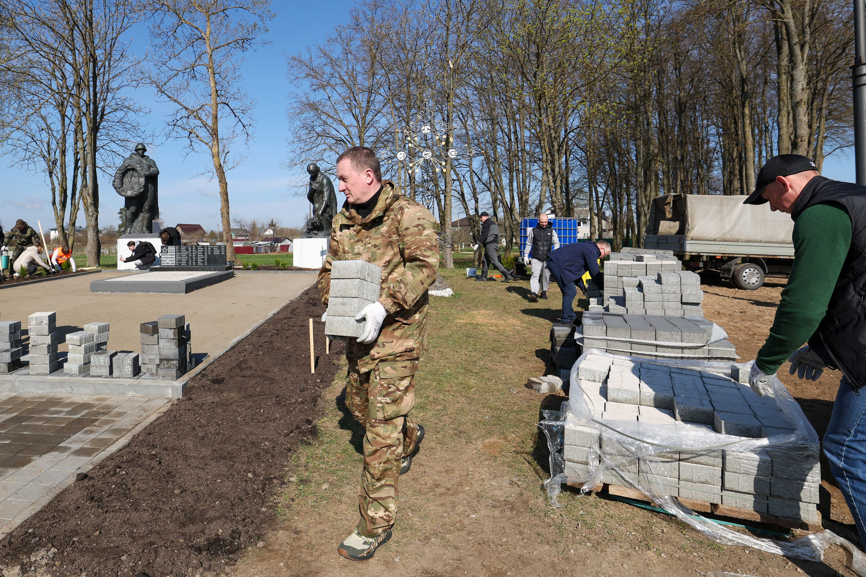 Премьер, вице-премьеры и руководство Аппарата Совета Министров сегодня трудятся на благоустройстве братской могилы, в которой захоронено 45 воинов Красной армии и партизан, павших в боях в июне 1941 года, при защите деревни Пятевщина и в июне 1944 года при ее освобождении.